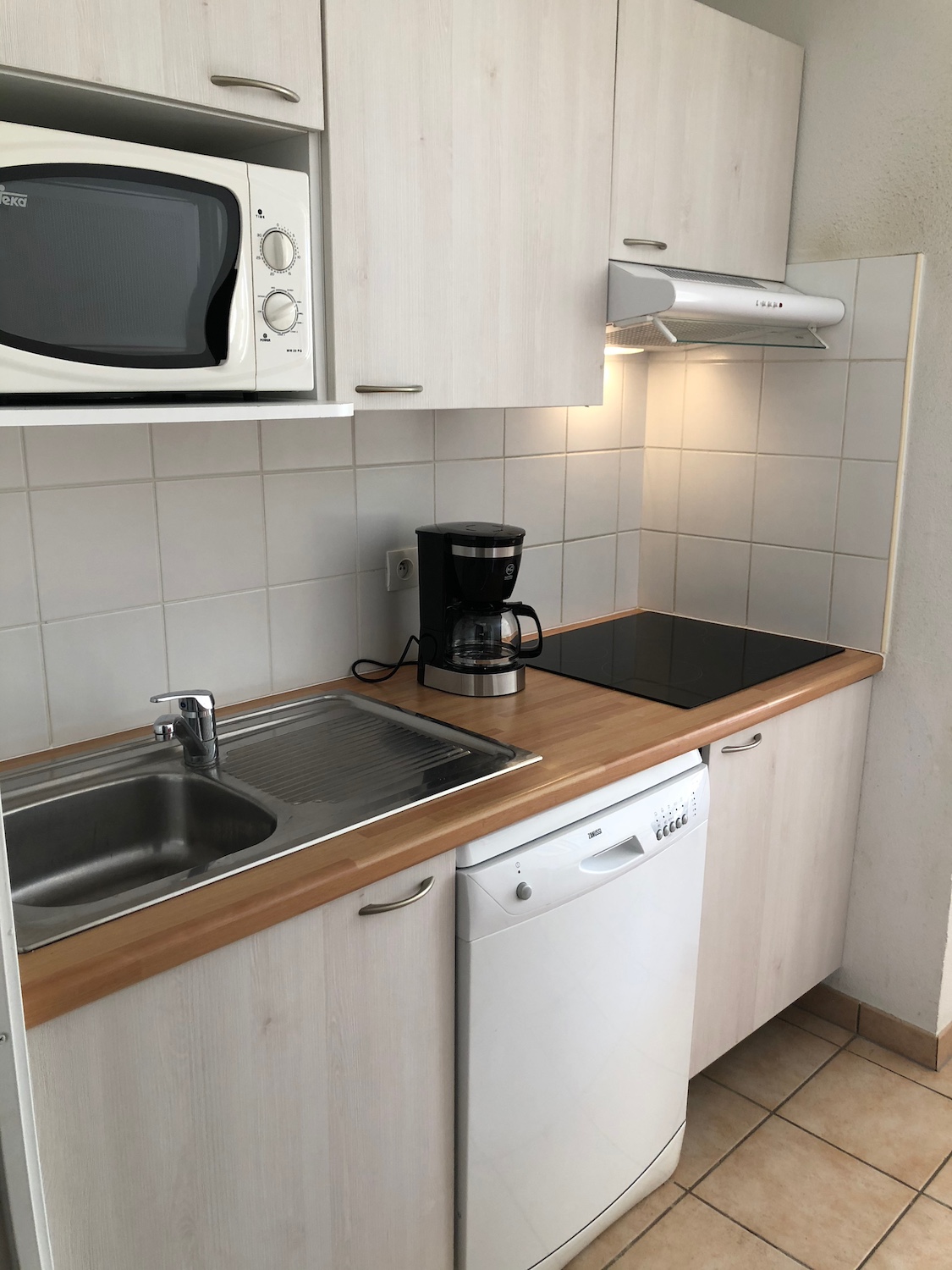 - Une cuisine équipée avec frigo et congélateur, micro ondes, cafetière, lave vaisselle ainsi que tout le nécessaire pour les repas du quotidien
