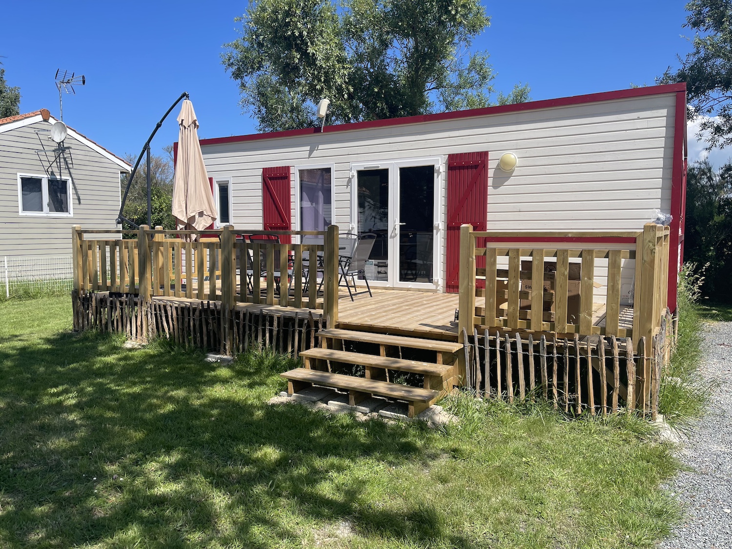 Chaque logement est installé sur une grande parcelle clôturée, garantissant intimité et sécurité — un vrai plus pour les familles avec enfants ou les vacanciers accompagnés de leur chien.